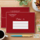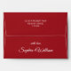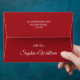 Expectations met; I liked that I had the opportunity to include our address on the back of the envelope. This color matched very well with my save the date. The color was the same as shown above. I had our address labeled on the back of the envelope and the font/printing met my expectations.