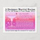 A Recipe card for the Pomegranate Martini by The Martini Diva. Mixing and garnishing instructions for a pomegranate flavoued vodka martini cocktail to bring the happy to Happy Hour.