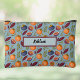 This pomegranate, orange, and fern accessory pouch features a repeating fruit and floral pattern, similar to British 1800 vintage textiles. The retro colors include orange, plum purple, and green ferns on a dusty blue background. This pouch is personalized with your name or other desired text. Make sure to type the text you want in the Personalize section.