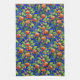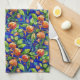 Pomegranate Pattern Dark Blue and Red Fruit Mosaic Tea Towel