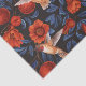 Pomegranates and hummingbirds/blue leaves on black tissue paper