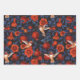 Pomegranates and hummingbirds/blue leaves on black wrapping paper sheet