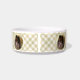 This is a heavy, durable bowl decorated with Tibbies of many colors, the perfect size for hungry/thirsty Tibs. The design is interesting and printing clear.