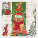Pomeranian Dog Christmas sitting outside decorated home with Christmas wreath, Christmas tree is a perfect Christmas gift idea for dog lovers.