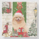 Pomeranian Dog Christmas sitting outside decorated home with Christmas wreath, Christmas tree is a perfect Christmas gift idea for dog lovers.
