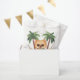 Cute illustration of a dog on a beach wearing Hawaiian t-shirts. Perfect for dog parents or pet lovers for summertime or a vacation!