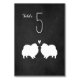 White Pomeranian bride and groom silhouettes with heart. A chalkboard style wedding reception table card for Pommie lovers. Each card must be numbered and added to cart separately. Visit Jenn's Doodle World for even more dog breed table cards and Pomeranian themed wedding planning products.