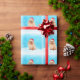 Pomeranian Dog Sitting On Beach Christmas Hat Wrapping Paper