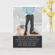 An adorable Pomeranian dog in a blue hat and cool round sunglasses stands with their dog dad in a faded street scene on this fun Father's Day card from the dog.