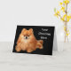 Go into customise and change text, YOUR GREETING HERE, to whatever you want. For example Happy Birthday, Thank You, Thinking Of You, Get Well, Miss You, Congratulations, Anniversary, etc. This card was left blank inside to allow you to covey your own personal message. The Pomeranian is a cocky, animated companion with an extroverted personality. This compact little dog is an active toy breed with an alert character and fox-like expression. Today, the Pomeranian is a popular companion dog and competitive show dog. They can come in all colours, patterns, and variations although orange and red are the most popular. Pomeranians are very intelligent dogs that love to please. Because of their outgoing temperaments, they can be very good family dogs with the right training. Due to their small size they don’t require much exercise, but are an energetic breed that needs attention from their people frequently. They possess a thick double coat, which needs to be brushed on a regular basis.