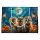 Unleash the spooky spirit with this eerie Halloween design featuring a pack of dogs under a dark, moonlit sky, surrounded by flying bats and glowing pumpkins. Perfect for those who love a touch of frightful fun with their furry friends!