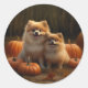 Pomeranian Puppy Autumn Delight Pumpkin Classic Round Sticker