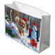 Pomeranian Running in Snow with Christmas Hat Large Gift Bag