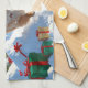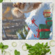 Pomeranian Running in Snow with Christmas Hat Tea Towel