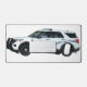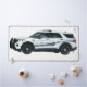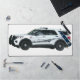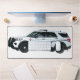 A desk mat featuring a photo of a Ponca City police vehicle.