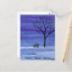 A watercolor landscape of a welcoming bench on the edge of a pond in the evening adorns this customisable postcard!