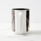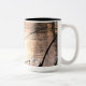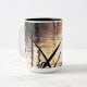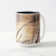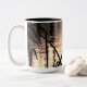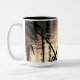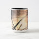 This mug features a striking impressionistic design. It's sunset at the pond. Cattails in the foreground are silhouetted by lovely shimmering water which is reflecting the pink, yellow, salmon, orange and gold of the evening sky. The incredible reflections almost look like they are painted on glass.