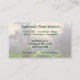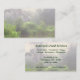 This business card advertises a pond service company which does pond planning, design, construction, maintenance, cleaning and management. It features a scene of peace and serenity ... an early summer morning with fog and mist rising over the pond. Distant sky, pale trees and green foliage are reflected in the water. The image is repeated on the back. All text can be customised to suit your individual situation.