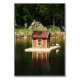 Pond with bird house on the backdrop of an alphine slide in Melitopol Gorky park
