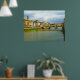 Poster of the historic Ponte Vecchio, a mediaeval bridge over the Arno River in Florence, Italy, noted for the many shops built along it, as was once common. See matching wrapped canvas print. See the entire Italy Poster collection in the ART & POSTERS section.