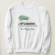 It's the perfect Christmas sweatshirt for pontoon boat owners. This fleece sweatshirt has an illustration of a green and white pontoon boat with a green Christmas tree tied on top. It's ready to be personalised below with your own message in green script lettering.