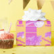 Cute pony horse purple pink striped wrapping birthday gift paper. Customise with your childs name and age. Currently reads Charlotte 1 today. Uniquely painted watercolor art and graphics by Sarah Trett.