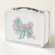 This is a standard metal lunchbox that appears to work just fine. We designed this box ourselves with an uploaded photo and custom text on the front and back. It looks absolutely beautiful except the front of the lunchbox is not centered like it shows in the photo. The print borders don't align with the inset flat part of the box where the preview photo online showed it perfectly centered in there. The back looks nice and centered though.