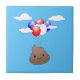 Poo Emoji Flying With Balloons In Blue Sky Tile