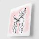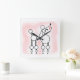 Wall clock with a snooty poodle illustration. A stylised poodle with pom poms and a pout on a powdery pink background.
