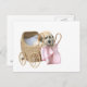 Poodle mix dog in an old fashioned wicker baby carriage photo postcard. Great for baby shower invitations or gift cards, pet sitter thank you or appreciation etc. Multiple dogs and multiple poses are available.