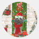 Poodle Dog Christmas sitting outside decorated home with Christmas wreath, Christmas tree is a perfect Christmas gift idea for dog lovers.