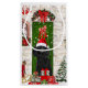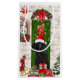 Poodle Dog Christmas sitting outside decorated home with Christmas wreath, Christmas tree is a perfect Christmas gift idea for dog lovers.