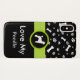 Show how much you love your Poodle dog breed pet with this stylish and trendy smartphone case designed with cute dog bones and paw print pattern and text you can personalise with your own message of love for your family pet. Includes a silhouette of a Poodle in an emblem on the case.
