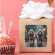This festive design captures the joyful spirit of the holiday season, featuring an adorable dogs.Nestled in a winter wonderland, complete with a decorated Christmas tree, and beautifully wrapped presents. Snowflakes gently fall, adding a magical touch to the scene, while the vibrant colours of the holiday decorations create a warm and cheerful atmosphere.