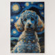 "Poodle in Starry Night" puzzle. Featuring a graceful poodle against a mesmerising night sky backdrop inspired by Van Gogh's masterpiece. Generative Content