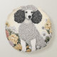 Poodle in Whimsical Flowers Round Cushion