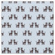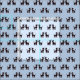 Silhouettes of two black poodles facing each other on a pale blue background.