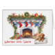 The front of this Christmas greeting card has an image of an adorable little Poodle puppy on a pillow in front of a decorated fireplace, expectantly waiting for Santa Claus. The red text at the bottom says "Waiting for Santa". The text is customisable, as is all the inside text, so you may make it say whatever you'd like. Cute! See more Poodle dog images, along with dozens of other dog breed products, at Dog Village.