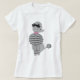 This cute French poodle design t-shirt is derived from the classic poodle skirts of the 1950s. The pretty vintage-looking light grey poodle dog has darker grey pompons of fur with chevrons and a black bow on its head.