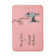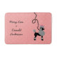 This cute French poodle retro bath mat design is derived from the classic poodle skirts of the 1950s. The pretty black poodle dog has grey pompons of fur with polka dots and a black stencil-style leash. It all rests on a vintage pink background with a light pink polka-dotted effect.