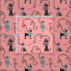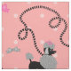 This cute French poodle fabric design is derived from the classic poodle skirts of the 1950s. The pretty poodle dogs are done in grey and black and have pompons of fur and stencil-style leashes. They intertwine in a repeating seamless pattern on a vintage pink background with a light pink polka dot effect.