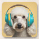 Poodle wearing headphones coaster