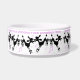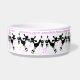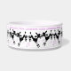 Poodle dog silhouettes, pink text that reads "poodles rock", and pink musical notes adorn this pretty dog dish that your poodle dog is sure to love to eat or drink from!
