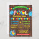 Pool combined party with a primary colour scheme and a faux wood background, add your own wording into the template, to more customisation (font colour, font style, background), click on personalise, scroll down and click on link "click to customise further".