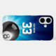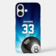 Unique case with pool game ball on illuminated blue background with personalizable text.