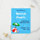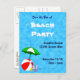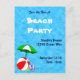 A custom beach or pool party invitation postcard template with a beach ball and umbrella on one side and room for your return address on the back in fun letters. Click Customise It to change fonts, sizing and more, even save you design for later.