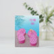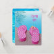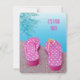 Pink and white polka dot flip-flops by swimming pool for pool party invitation.