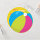 This round party invitation features a colourful pink, yellow, blue, and green beach ball on the front of the invitation. The back of the invitation has template areas for you to customise with your event information.