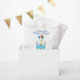 Pool party favour bags with a cute illustration of a little whale. The whale is wearing a red and white striped party hat and has started the birthday party which takes place in a filled water glass.