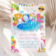 POOL PARTY (PINK) - This Pool Summer Party Tropical Invitation showcases colourful lettering, a festive rainbow banner, and all kinds of pool party toys and sweet summer treats!. This swimming pool birthday invitation is sure to complete and pool party theme!! Also included is a serene pool water backside. By using the easy to use Zazzle software (no download necessary) right in your browser, you simply purchase and personalise all in the same place. It's as easy as that!
